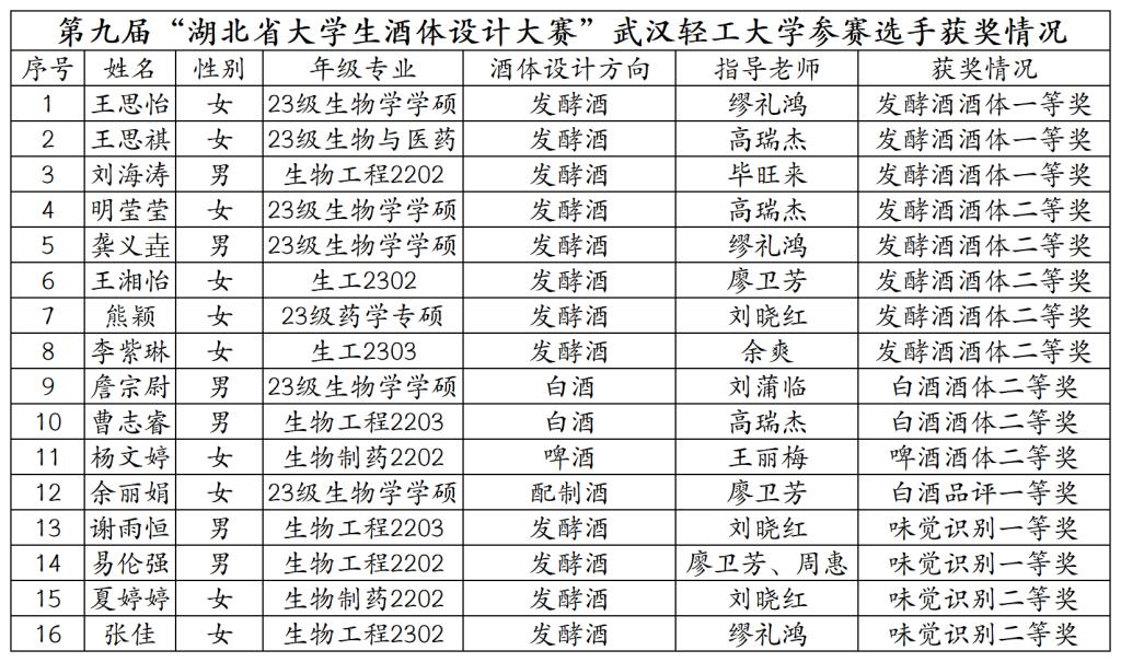 本次优异成绩的获得,离不开师生们的努力和汗水,也充分展示了我院在培养酿酒技能人才方面的卓越成效。据悉,明年赛事将由湖北省教育厅主办,成为全省高校生物(酿酒)工程类规格最高的技能大赛。接下来,我院将发挥“以赛促学、以赛促训、以赛促建”的作用,积极践行“三全育人”的教育理念,不断助力湖北省“51020”现代产业体系中酿酒与饮料业的发展。