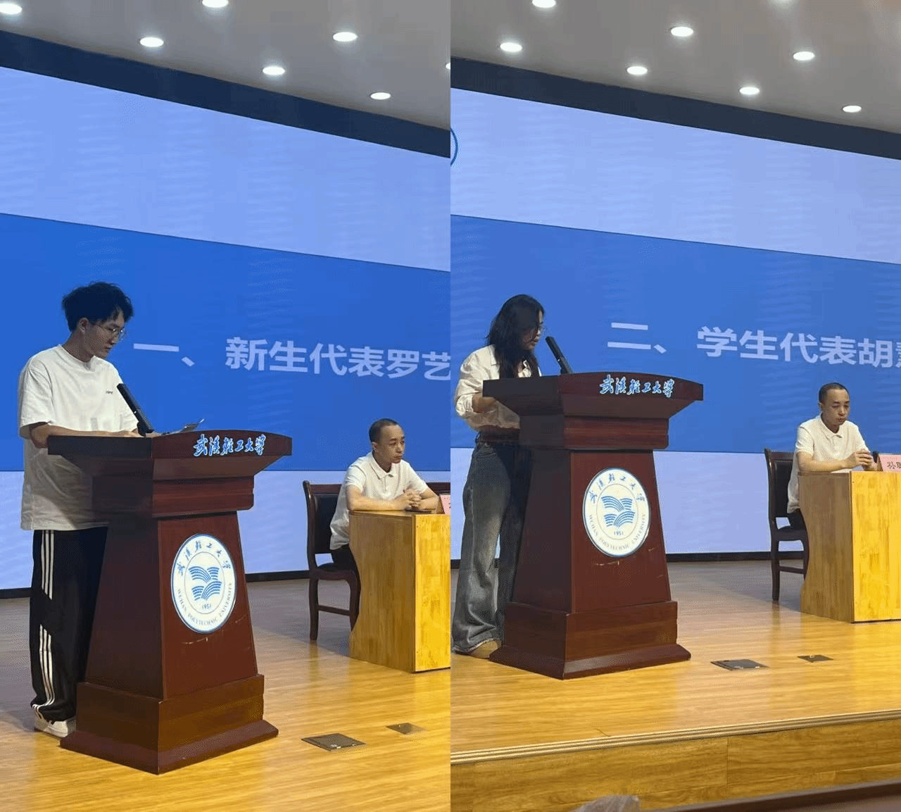 2025 级生物学专业新生罗艺作为新生代表发言。他以 “感恩与期许” 为主题,分享了自己选择生命科学领域的初心,表达了对研究生阶段探索未知、深耕科研的热切期待。“我们将以‘空杯心态’虚心求教,以‘钉钉子精神’刻苦钻研,不辜负学院的培养与老师们的殷切期望,努力成为有理想、敢担当、能吃苦、肯奋斗的新时代研究生。” 罗艺的发言铿锵有力,引发全场新生共鸣。
