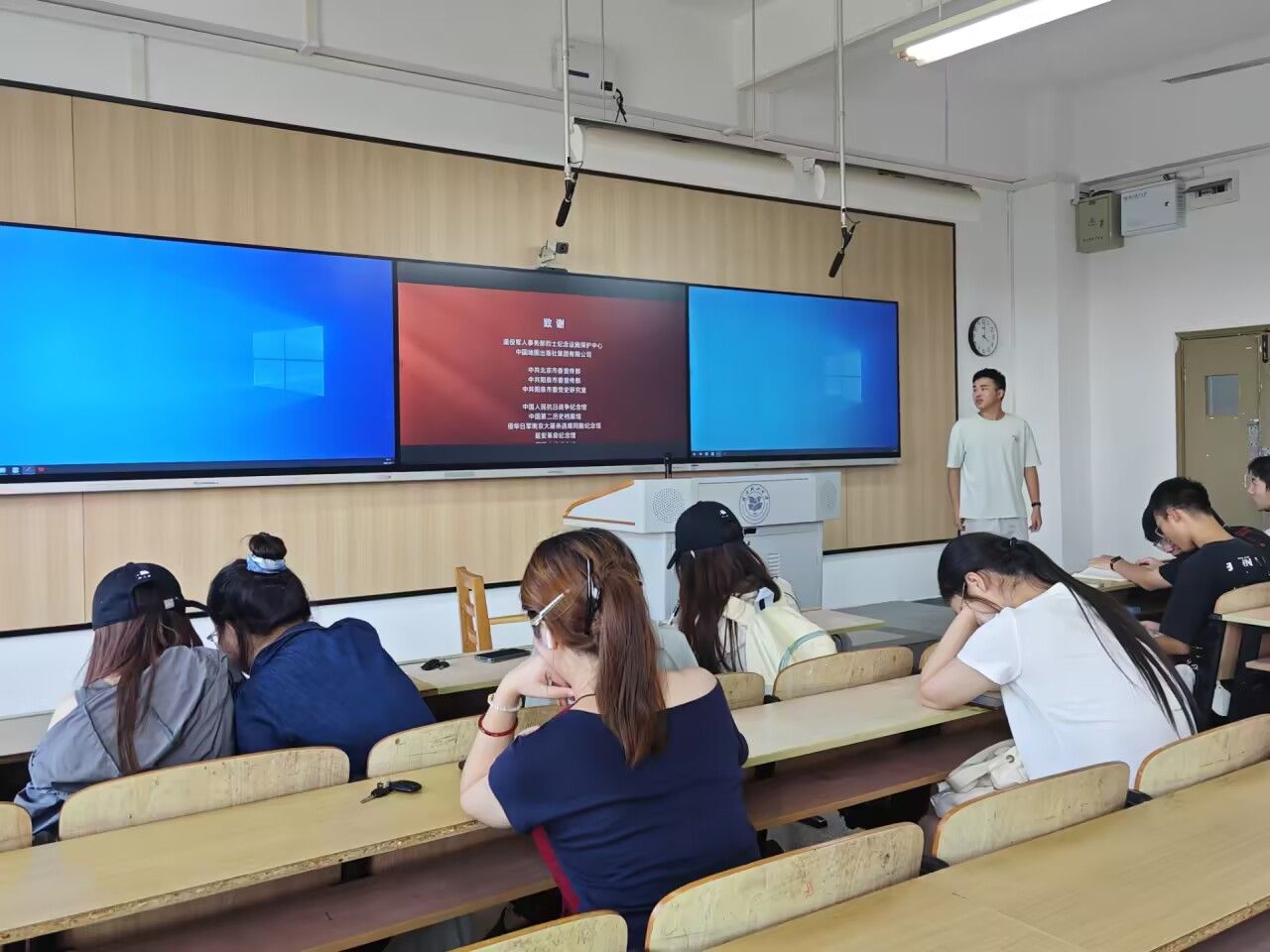 学院多个教室、会议室化身临时 “学习课堂”,辅导员与学生们一同端坐屏幕前,认真聆听关于抗战历史、大国发展与青年责任的深刻讲解。从抗战先辈舍生取义的英雄事迹,到新时代中国在科技、民生等领域的辉煌成就,再到 “大国担当” 背后蕴含的使命与责任,每一个话题都引发强烈共鸣。2022级生物工程专业学生王高文在课后分享时说:“思政课里讲到的抗战故事让我深受震撼,如今的和平生活来之不易,作为轻工学子,我们更要把‘担当’二字融入专业学习,将来用生物技术为国家发展贡献力量。”